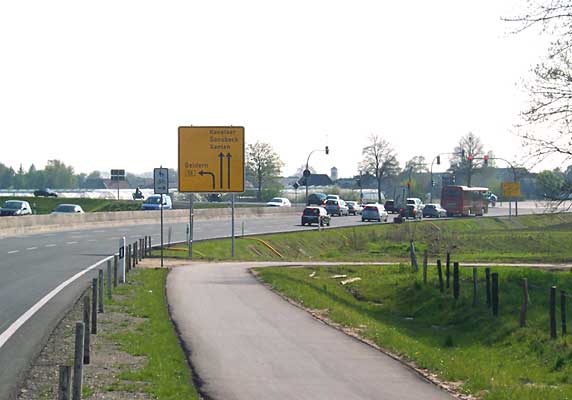 Sie verlassen die B 58, die nach links abgeht, geradeaus an der ersten Ampel nach der Rheinbrücke.