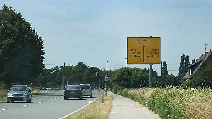 Sie überqueren in Xanten-Birten die B 57 und fahren geradeaus auf der Landstraße 460 Richtung Sonsbeck.