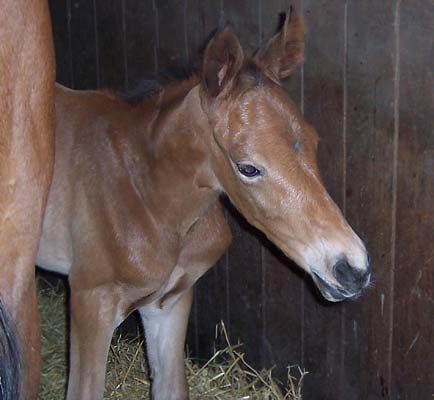 Auch unser drittes Fohlen 2005 stammt - wie schon Stakkato - aus dem ersten, mit Spannung erwarteten Fohlenjahrgang des im April 2003 gekörten EH.Goldschmidt, der seinerzeit auf der Station Wilbers in Weeze stationiert war.