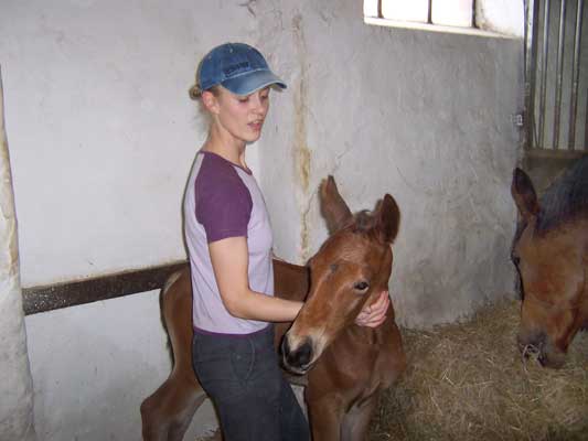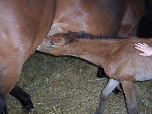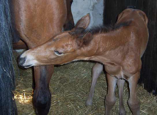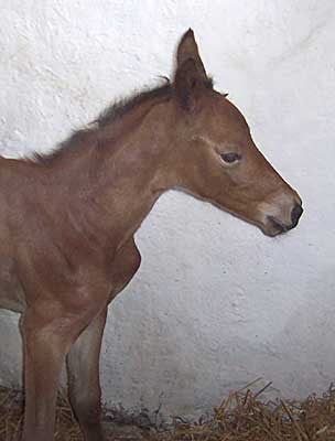 Sugar Lady ist am 30. April um 22.45 Uhr geboren - ein braunes Stutfohlen aus der PS. Sabra II von Cornus, deren viertes Fohlen sie ist. Wie schon zuvor bei Samara hat die Stute im Stehen abgefohlt.