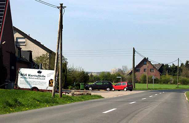 Das Schild vor dem Hof Miß fällt deutlich ins Auge. Gleich dahinter geht die Hockender Straße nach links ab.